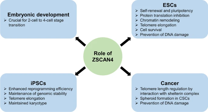Scientists discuss the multifaceted role of ZSCAN4 in embryonic development, ESCs, iPSCs, cancer, and germ cells.