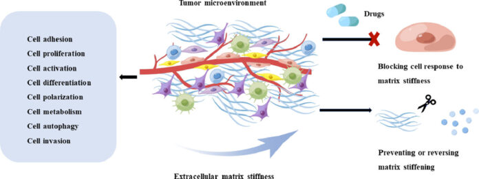 The effect of matrix stiffness on cancer cells has been described in many studies, whereas its effect on cancer stromal cell fate has rarely been summarized. The authors discuss the relevant content and drug treatment studies targeting matrix stiffness.