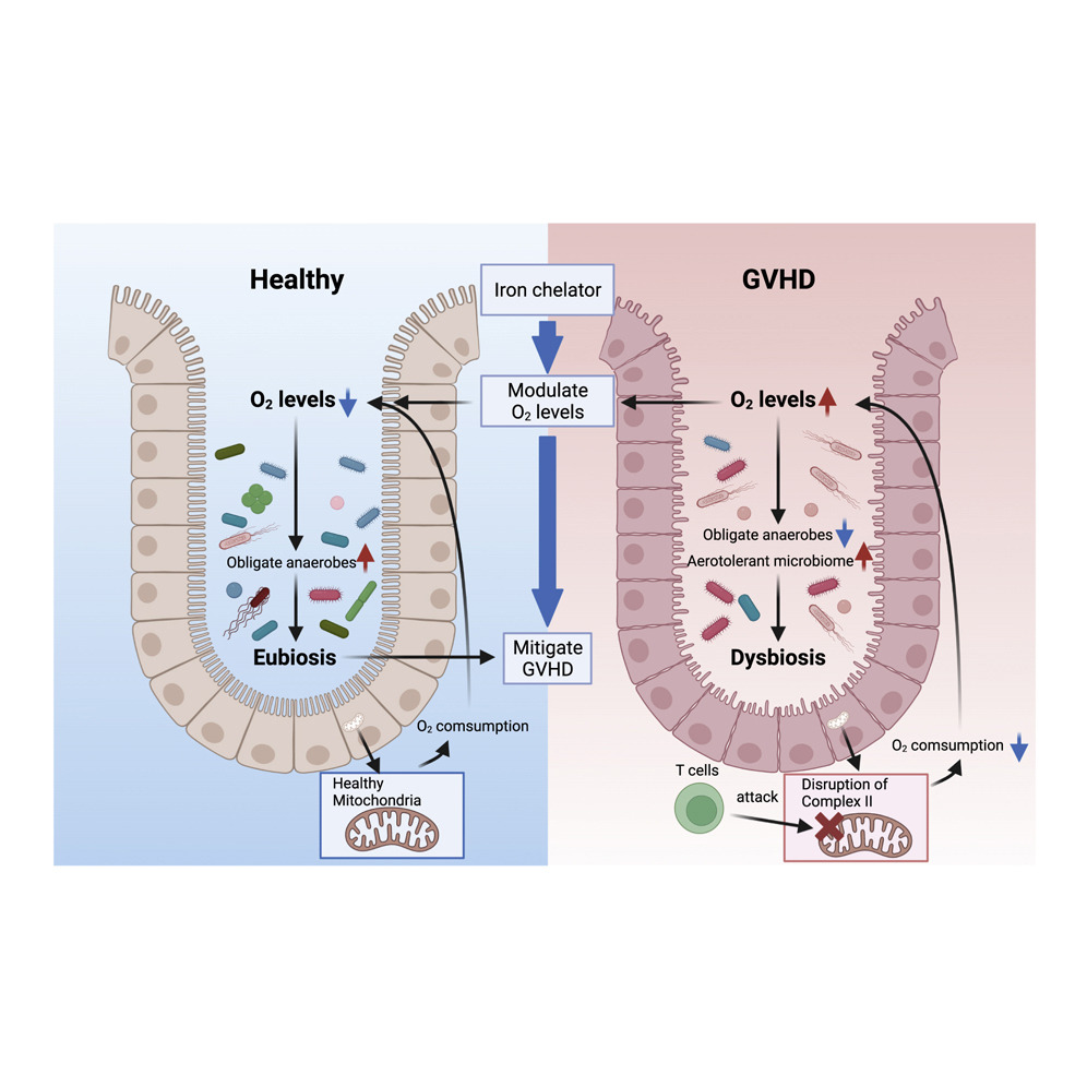 The authors showed in multiple specific pathogen-free, gnotobiotic, and germ-free murine models of gastrointestinal (GI) GVHD that the initiation of the intestinal damage by the pathogenic T cells altered ambient oxygen levels in the GI tract and caused dysbiosis.