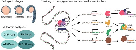 Researchers stimulated the retinoic acid (RA) pathway by treating zebrafish embryos with all-trans-RA and used a combination of RNA-seq, ATAC-seq, ChIP-seq and HiChIP to gain insight into the molecular mechanisms by which exogenously induced RA signaling controlled gene expression.