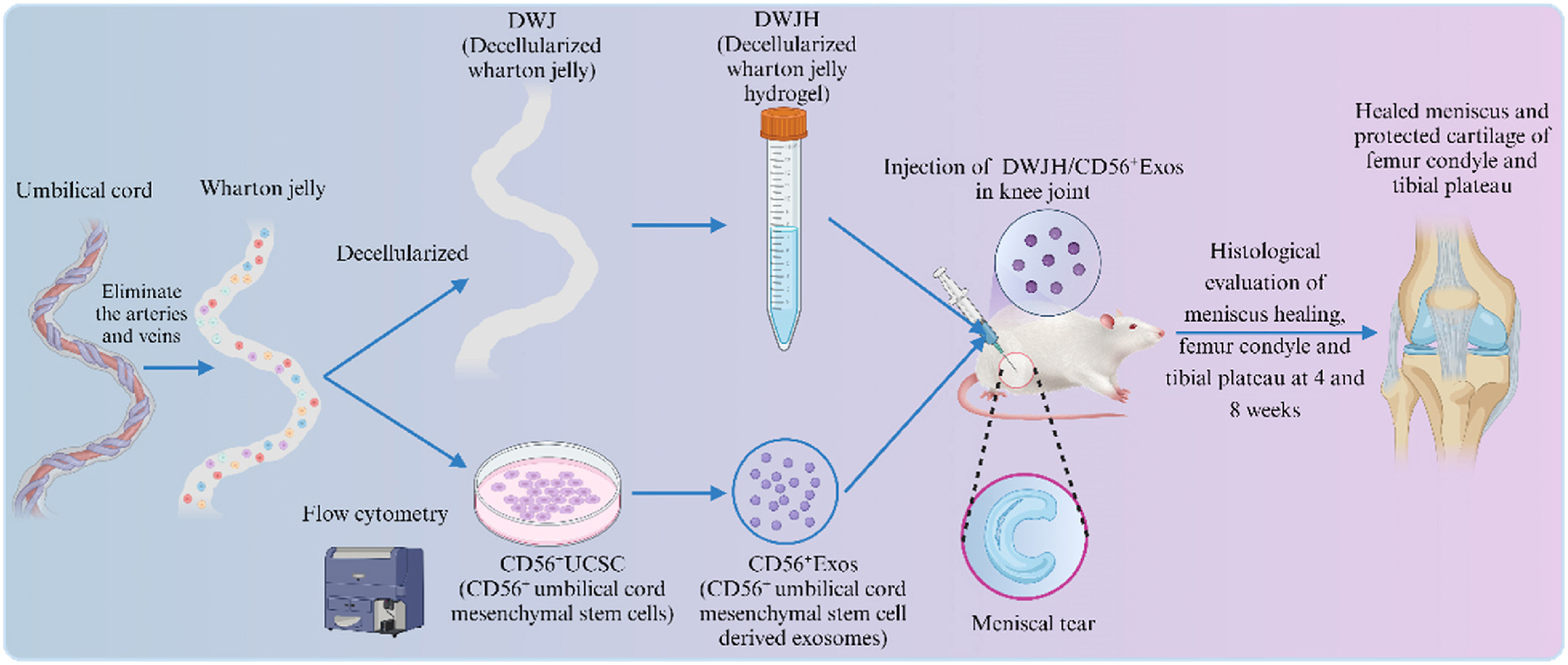 NewslettersMesenchymal Cell News Injectable Decellularized Wharton’s Jelly Hydrogel Containing CD56+ Umbilical Cord Mesenchymal Stem Cell-Derived Exosomes for Meniscus Tear Healing and Cartilage Protection By Jamie Kang - October 1, 2024 0 114 Modified decellularized Wharton’s Jelly hydrogel (DWJH) was combined with isolated CD56+Exos from CD56+umbilical cord MSCs to fabricate DWJH/CD56+Exos. The in vitro studies were performed to characterize the DWJ. [Materials Today Bio] Full ArticleGraphical Abstract