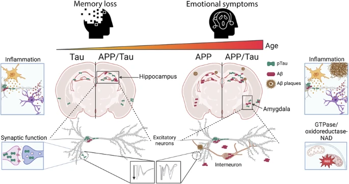 NewslettersNeural Cell News Synaptic Vulnerability to Amyloid-β and Tau Pathologies Differentially Disrupts Emotional and Memory Neural Circuits By Noshin Noorjahan - January 30, 2025 0 50 Researchers investigated the vulnerability of memory and emotional circuits to Aβ and tau pathologies in mice expressing mutant human amyloid precursor protein (APP), Tau or both APP/Tau in excitatory neurons. [Molecular Psychiatry] Full ArticleGraphical Abstract