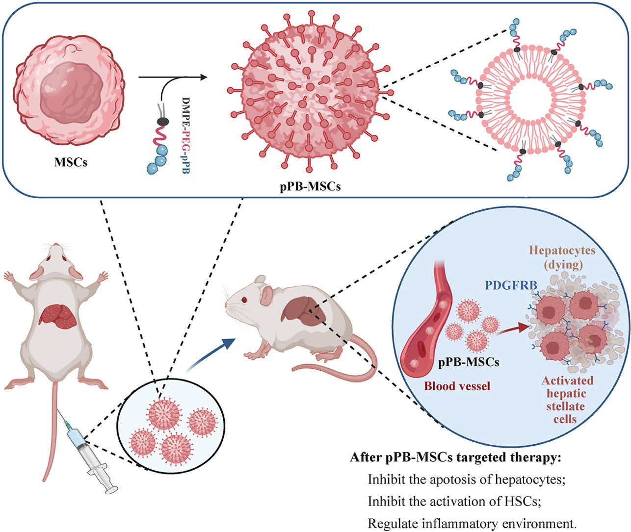 NewslettersMesenchymal Cell News Modification of MSCs with aHSCs-Targeting Peptide pPB for Enhanced Therapeutic Efficacy in Liver Fibrosis By Emily Salmini - April 8, 2025 0 52 Scientists engineered pPB peptide-functionalized MSCs via hydrophobic insertion of DMPE-PEG-pPB into the MSC membrane, creating a targeted “MSC-pPB-activated hepatic stellate cell” delivery system. [Biomaterials] AbstractGraphical Abstract