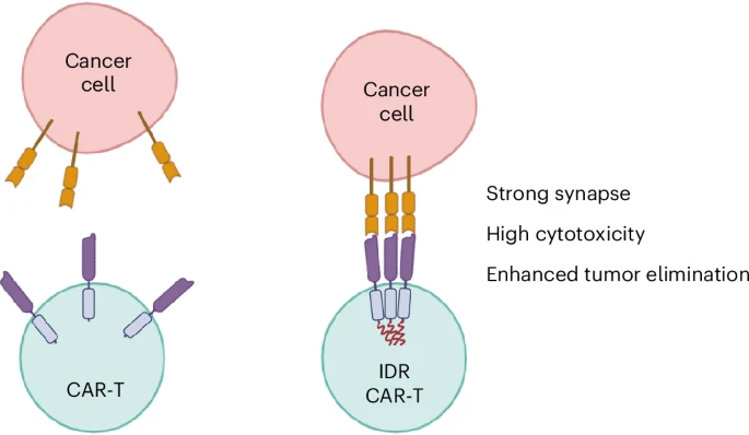 NewslettersCell Therapy News IDR-Induced CAR Condensation Improves the Cytotoxicity of CAR-Ts against Low-Antigen Cancers By Noshin Noorjahan - October 1, 2025 0 27 Scientists engineered CARs targeting CD19, CD22, and HER2 by including intrinsically disordered regions (IDRs) that promote signaling condensation. [Nature Chemical Biology] Full ArticleGraphical Abstract