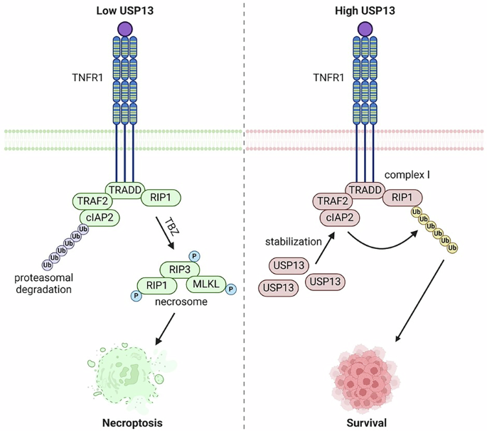 Investigators described the novel function of ubiquitin-specific protease 13 (USP13) as a crucial regulator of necroptosis. USP13 interacts with cellular IAP2 (cIAP2), stabilizing cIAP2 proteins in colorectal cancer cells.