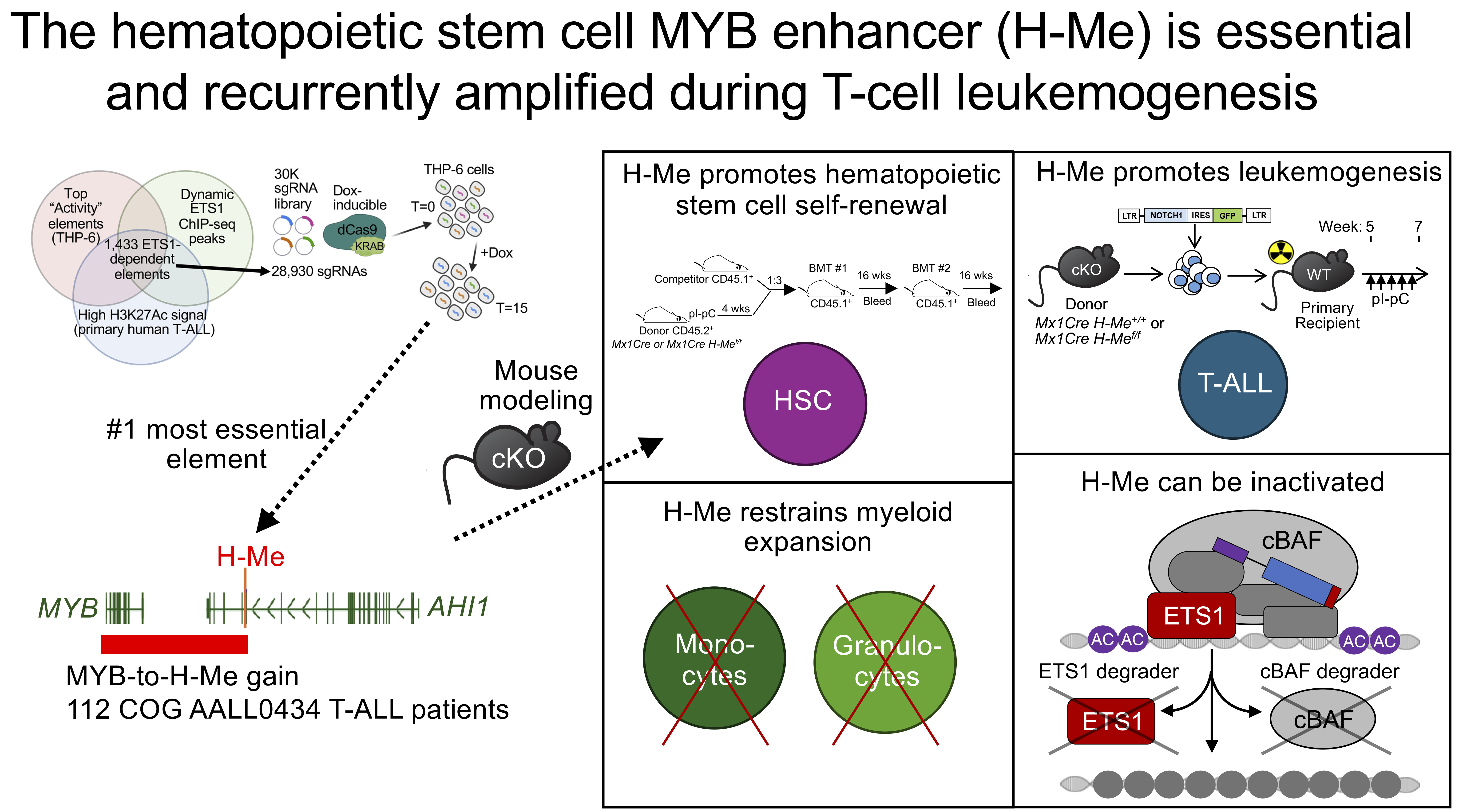 NewslettersHematopoiesis News The Hematopoietic Stem Cell MYB Enhancer Is Essential and Recurrently Amplified during T-Cell Leukemogenesis By Noshin Noorjahan - November 4, 2025 0 34 The authors performed a genome-wide CRISPR interference screen of the strongest ETS1-dependent regulatory elements. [Journal of Clinical Investigation] AbstractGraphical Abstract