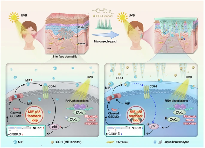 Using single-cell transcriptomics and a lupus-prone mouse model, investigators identified keratinocyte-derived macrophage migration inhibitory factor (MIF) as a key amplifier of cutaneous inflammation through a self-sustaining feedback loop.