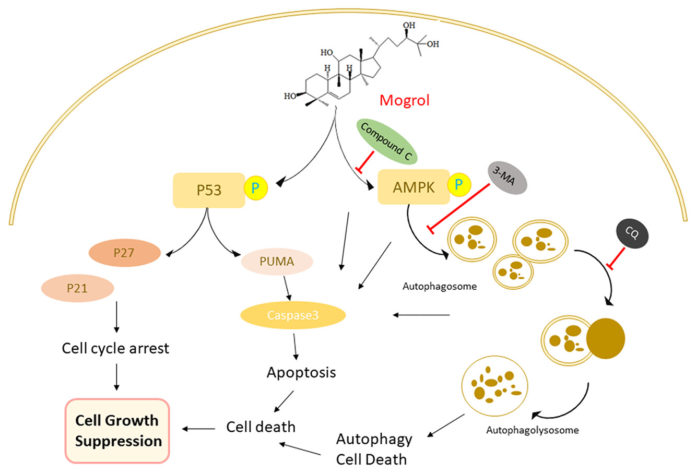 Mogrol significantly inhibited the proliferation and migration of lung cancer cells, including non-small-cell lung carcinoma cells, A549, H1299, H1975 and SK-MES-1 cells, with no obvious effect on control human bronchial epithelial cells.